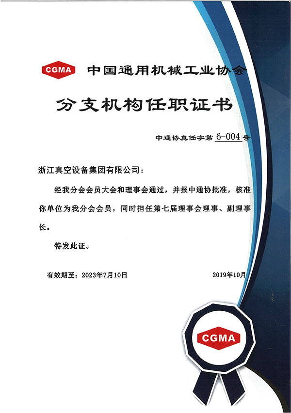 中國通用機械工業(yè)協(xié)會分支機構任職證書